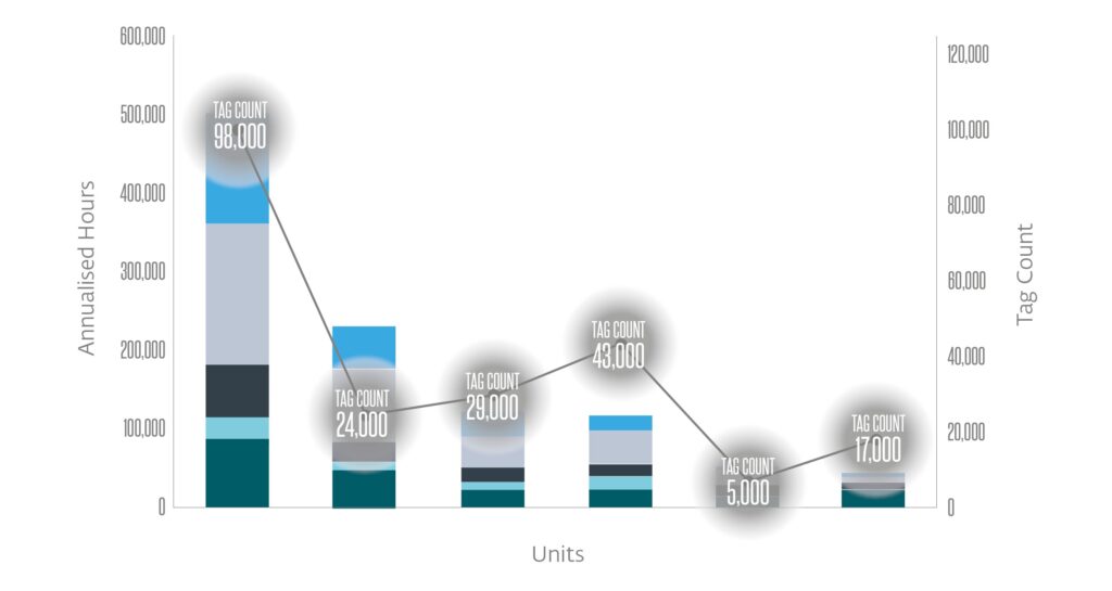 We analysed the client’s existing planned maintenance data and benchmarked the findings with best practice maintenance data across similar asset types, to identify immediate, quick win gains, as well as long term implementation improvements. Below is an overview of our approach: