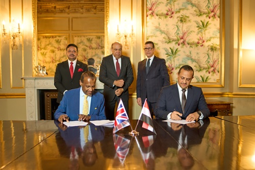 Photo 2: RV Ahilan, Chief Energy Transition Officer for ABL Group, Tamer Gamil, Country Manager to ABL Egypt, Dr Sameh Ahmed El-Henfy, the Minister of Aviation for Egypt, Mr Sherif Ahmed Mahmoud Kamel, His Excellency the Ambassador for Egypt to the UK, and Eng. Aiman Arab, the Chairman of EHCAAN.